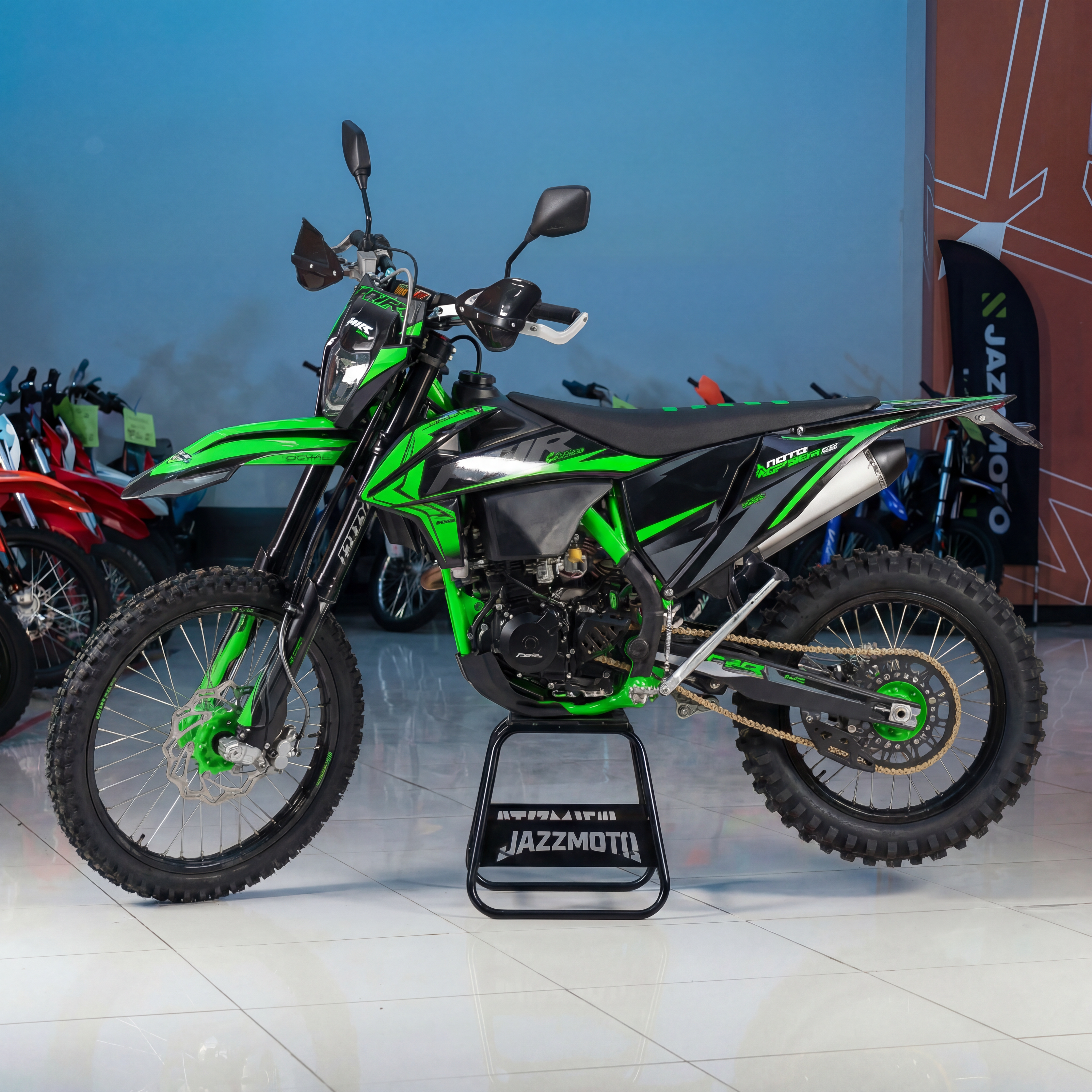 PWR FM300 NC — удачный выбор для тех, кому нужен мотоцикл кроссовый для пересеченной местности, полей и лесов. Он сочетает мощный двигатель ZONGSHEN 182 MN, большой ход подвесок, удобную посадку, надежные комплектующие и неприхотливость в обслуживании, что делает модель практичной для активной езды.