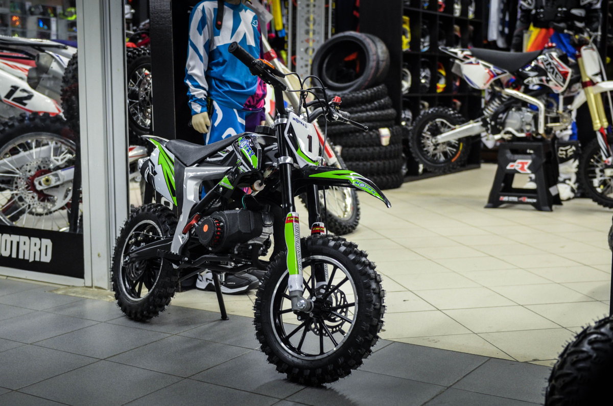 Оригинальный детский  бензиновый мотоцикл для начинающих кроссменов от 4 лет. Несмотря на небольшие габариты и вес (мотоцикл легко помещается в багажник легкового автомобиля) обладает хорошим потенциалом для начального уровня обучения езде на мотоцикле в дисциплине кросс. Для безопасности оборудован кнопкой стоп-двигатель с петлей безопасности, которая закрепляется на руке. В случае падения, двигатель моментально глушится. Не смотря на игрушечный вид мотоцикла не забывайте про кроссовую экипировку для ребенка. Побеспокойтесь о его безопасности.