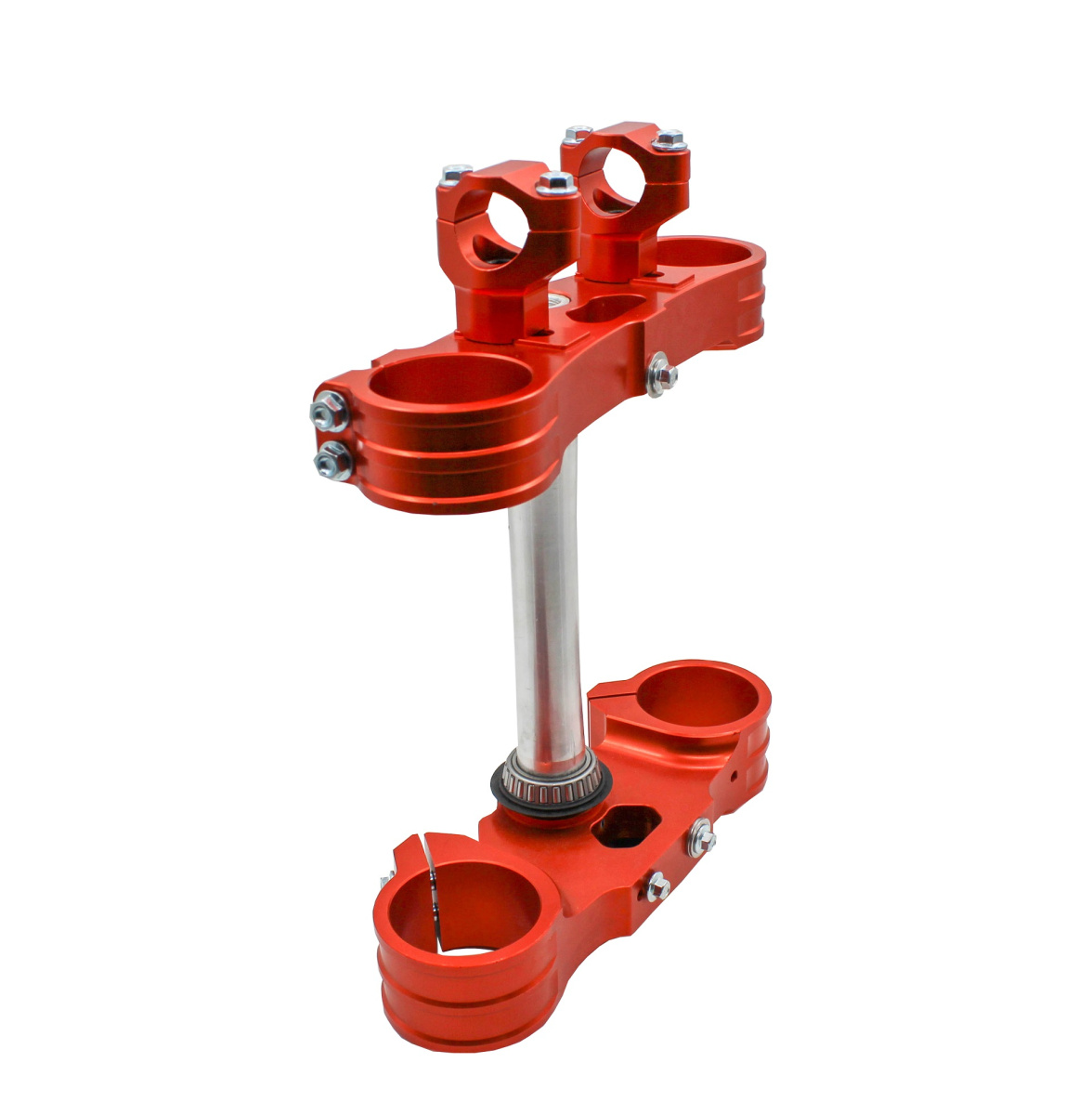 Траверсы для кросс и эндуро мотоцикла. В комплекте: траверсы верхняя и нижняя, стойки руля, ось, подшипники. Диаметр захватов верхней траверсы 53 мм, нижней траверсы 58,5 мм. Межосевое расстояние по центрам захватов 190 мм.